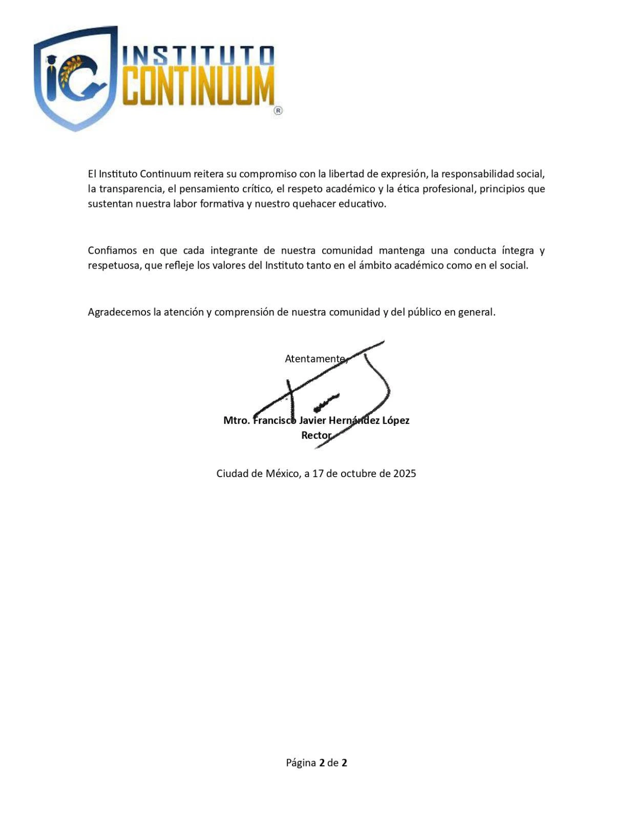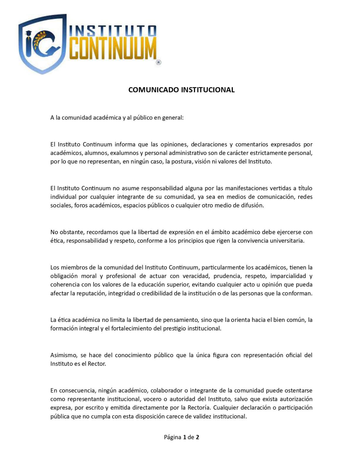 Comunicado a nuestra comunidad académica, educativa y a la opinión pública.