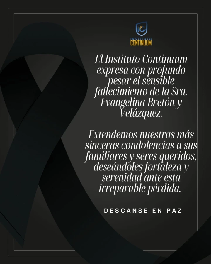 La familia Continuum expresa sus más sinceras condolencias a nuestra Académica Evangelina Martínez Bretón, por el sensible fallecimiento de su mamá, la Sra.Evangelina Bretón y Velázquez.