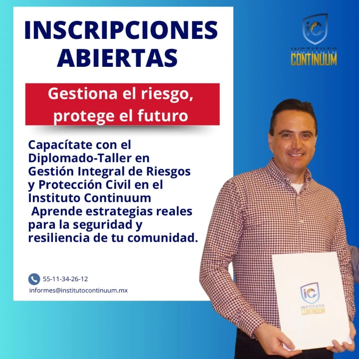 Estudia en el INSTITUTO CONTINUUM el Diplomado -Taller en Gestión Integral de Riesgos y Protección Civil y aprende estrategias reales para la seguridad y resiliencia de tu comunidad.