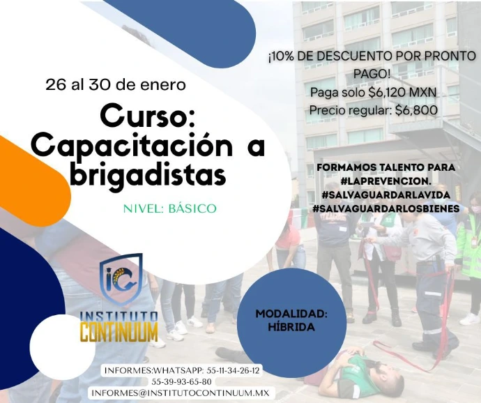El INSTITUTO CONTINUUM abre inscripciones para los cursos de capacitación a brigadistas que se llevarán a cabo del 26 al 30 de enero de 2026: