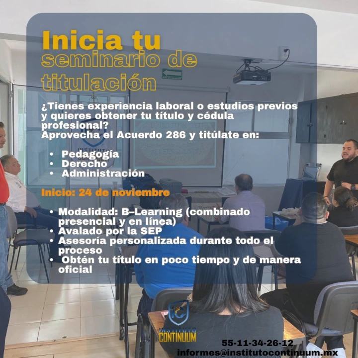 El INSTITUTO CONTINUUM abre inscripciones para el seminario de titulación en las Licenciaturas de #Administración, #Derecho y #Pedagogía